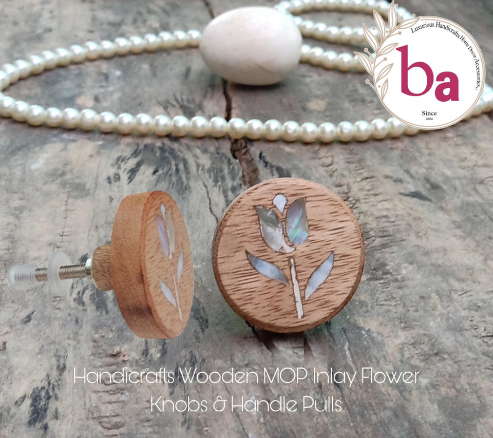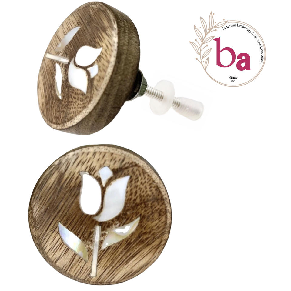 ลูกบิดไม้แกะสลักรูปดอกไม้