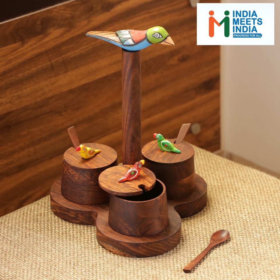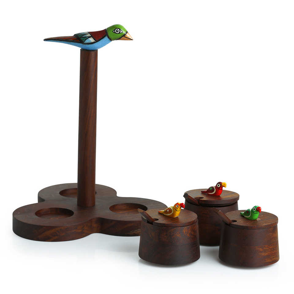 Product name:Wooden Jar Set With Tray & Spoons