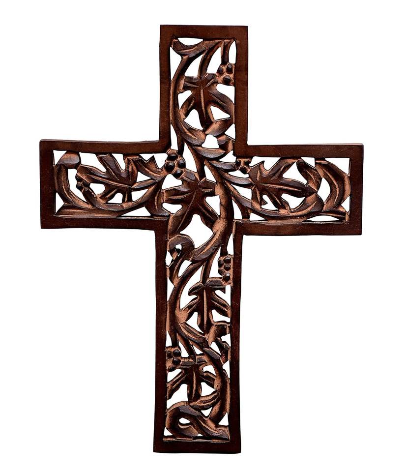 ไม้กางเขนพระเยซูคริสต์ทำจากไม้: แผ่นโลหะแขวนออกแบบโบราณแกะสลักด้วยมือสำหรับตกแต่งบ้านแท่นบูชาของตกแต่งห้องสีน้ำตาล