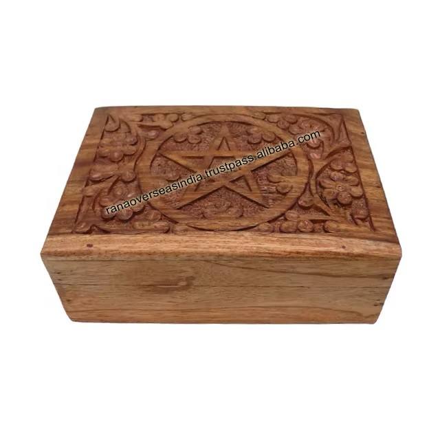 กล่องเก็บเครื่องประดับไม้พร้อมลวดลายแกะสลักรูปดาวห้าแฉก