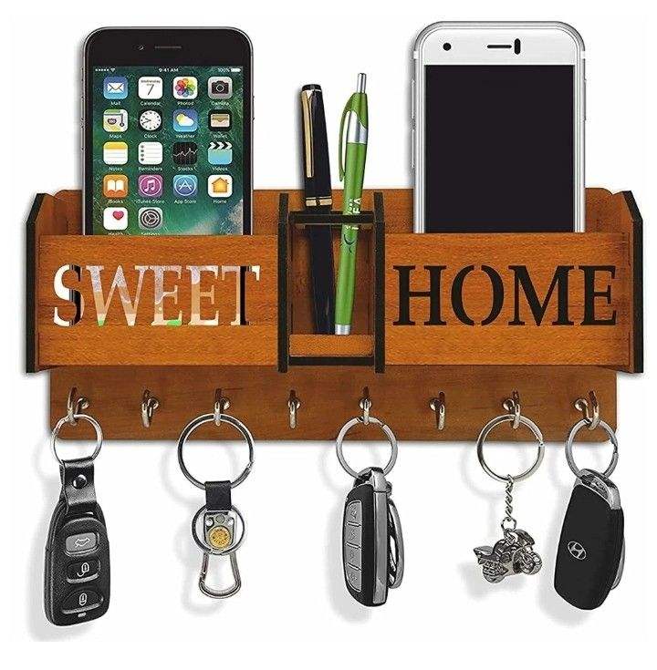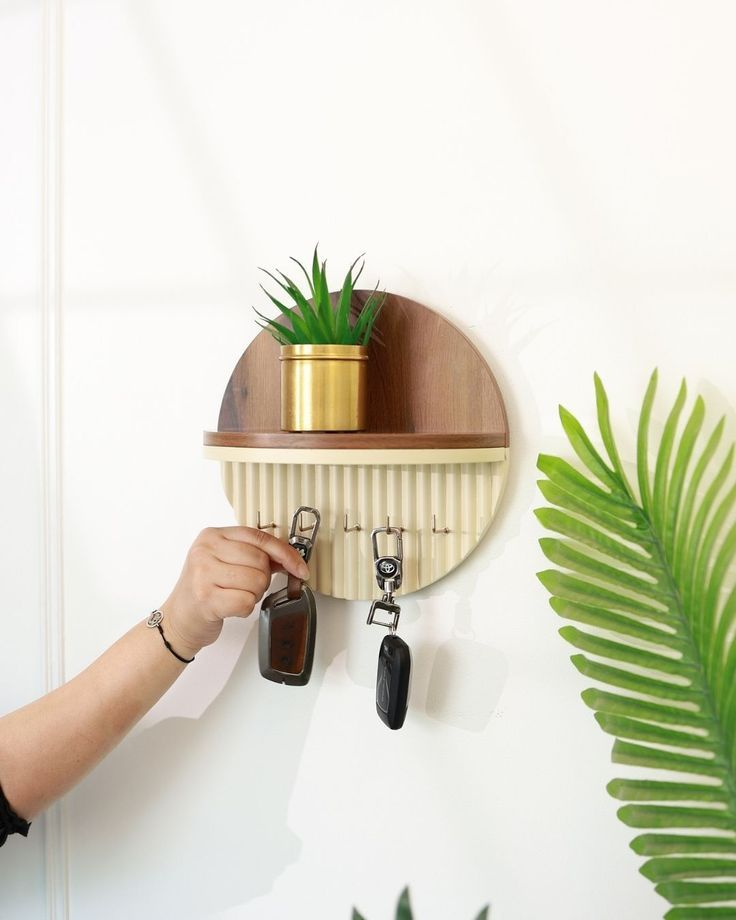 ที่แขวนกุญแจไม้ติดผนังพร้อมชั้นวางและตะขอ ดีไซน์ตกแต่งสวยงามจากไม้ธรรมชาติ