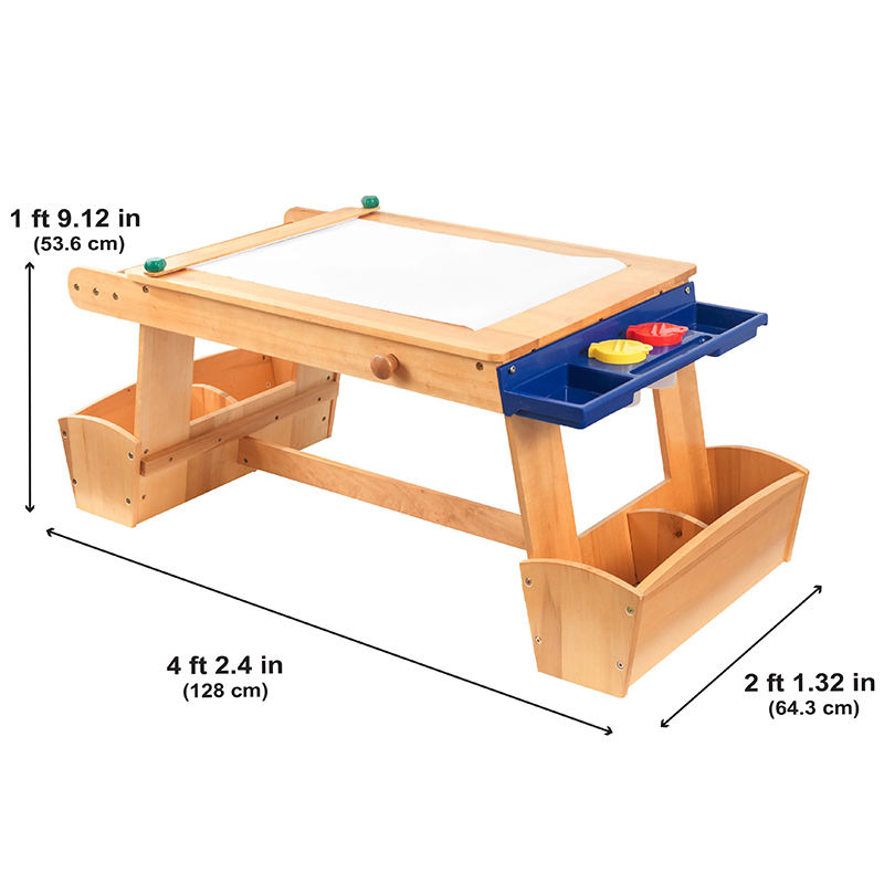 โต๊ะศิลปะและกิจกรรมสำหรับเด็กทำจากไม้ โต๊ะเขียนหนังสือสำหรับเด็กอเนกประสงค์พร้อมช่องเก็บของ โต๊ะวาดภาพสำหรับเด็กวัยหัดเดิน