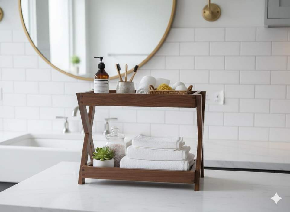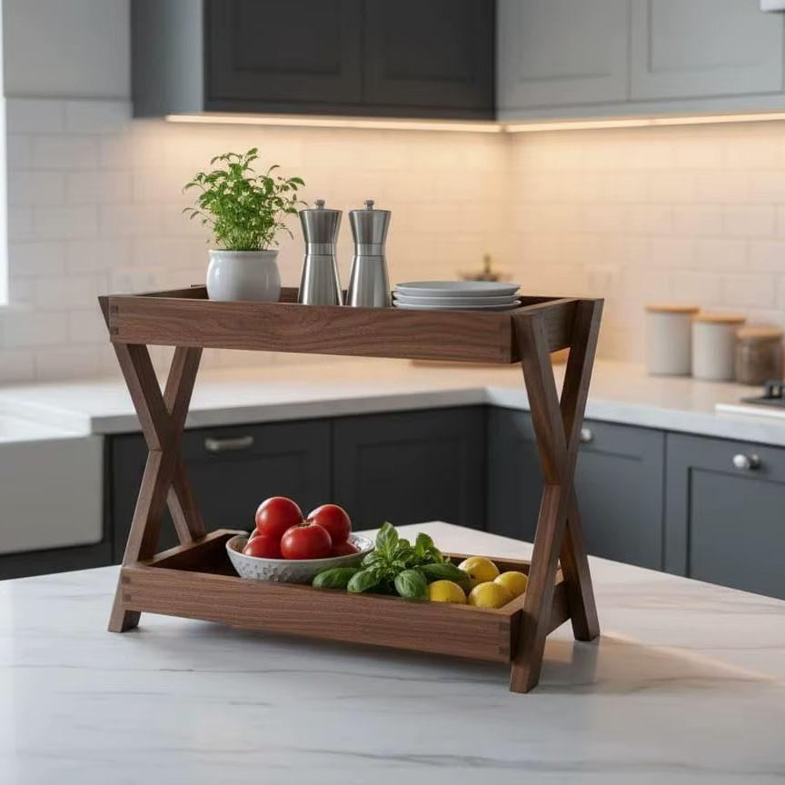 ชั้นวางของในครัวไม้ 2 ชั้น | กล่องเก็บของอเนกประสงค์ไม้สักแท้ | ชั้นวางเครื่องเทศในร้านขายของชำ | ขวดโหล
