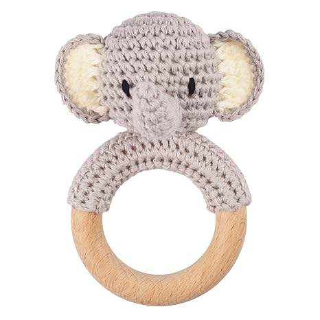 ของเล่นเขย่ามือถักโครเชต์รูปสัตว์ทำจากไม้ ของเล่นกัดแทะสำหรับเด็กทารก ขนาด 5 นิ้ว ลายสัตว์ Labbus
