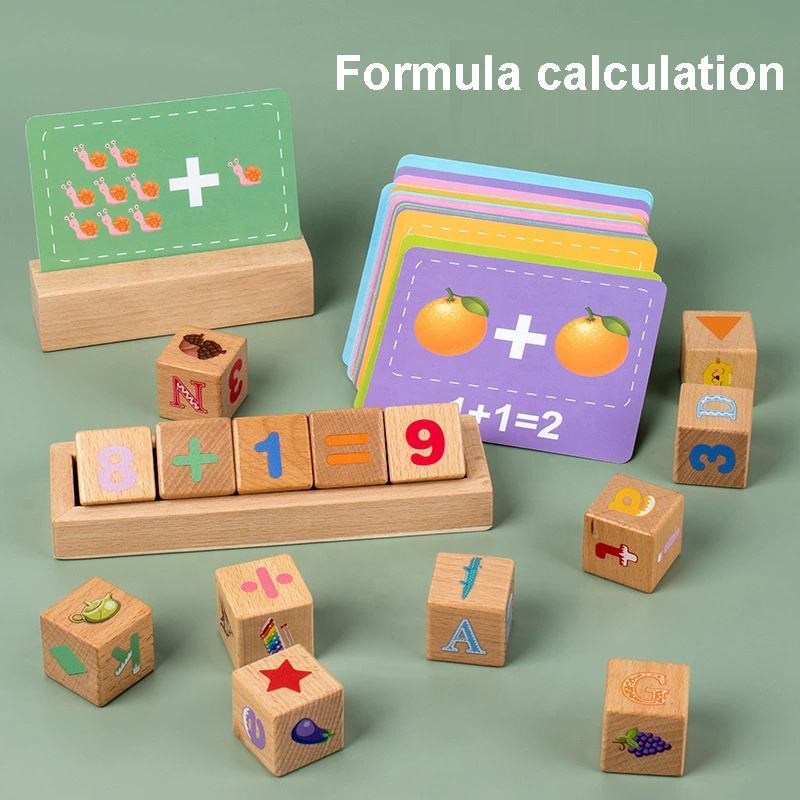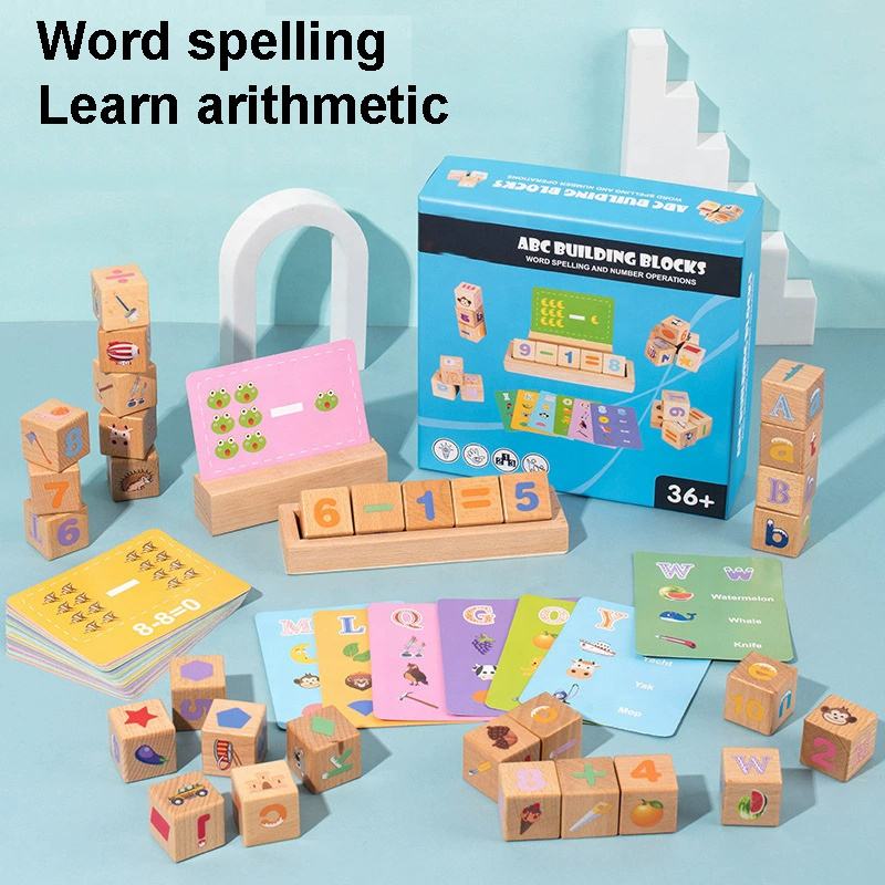 ตัวอักษรไม้ลูกบาศก์บล็อกของเล่น2ใน1ต้นการศึกษาคำสะกดคณิตศาสตร์เลขคณิตเรียนรู้การจับคู่แฟลชการ์ดเกม