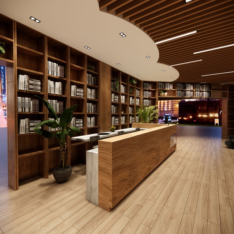 ชั้นวางหนังสือห้องสมุดไม้ตู้แสดงหนังสือชั้นวางหนังสือไม้สําหรับการออกแบบเฟอร์นิเจอร์ห้องสมุด