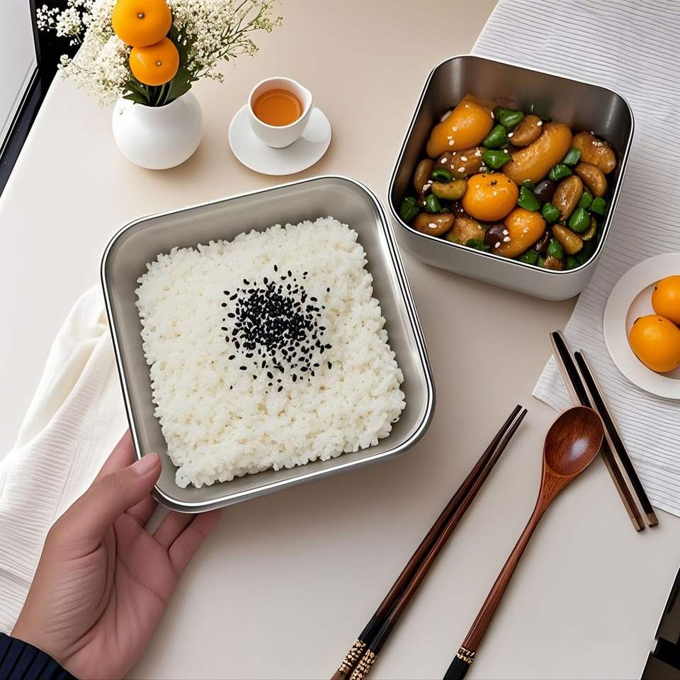 ชุดกล่องอาหารกลางวันฝาไม้ สแตนเลส 304 พร้อมกระเป๋าเก็บอุณหภูมิแบบพกพาสำหรับพนักงานออฟฟิศ มีช่องแบ่ง