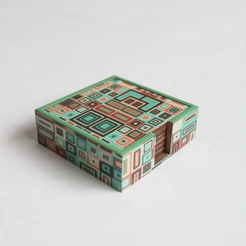 ชุดแผ่นรองแก้วแบบไม้เคลือบเอนาเมล 5 มม. ทนทาน เป็นมิตรกับสิ่งแวดล้อม จำนวน 6 ชิ้น พร้อมที่วาง ป้องกันการหก รอยขีดข่วน และความร้อน