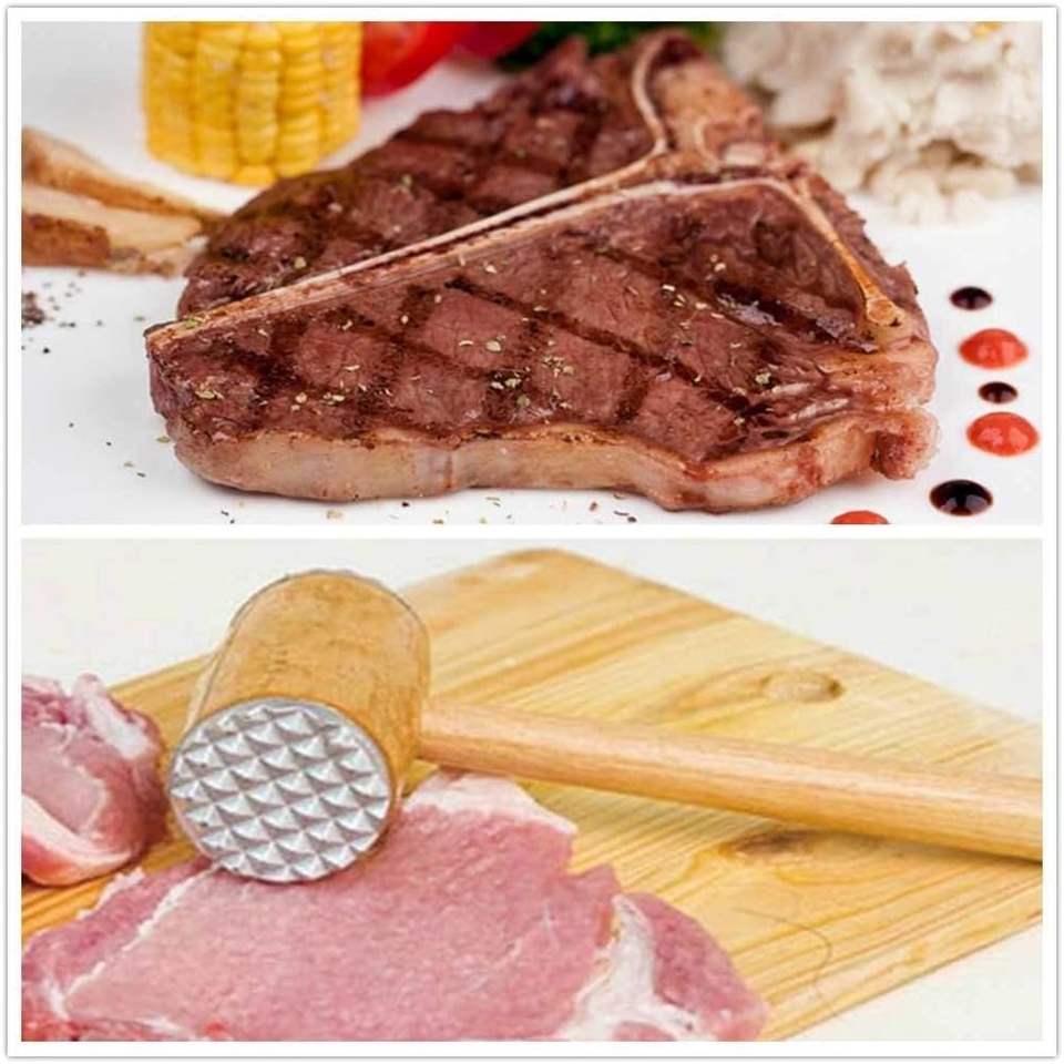 Wooden Meat Tenderizer Mallet,Chicken Pounder with Double Side Aluminum Meat Mallet 12"