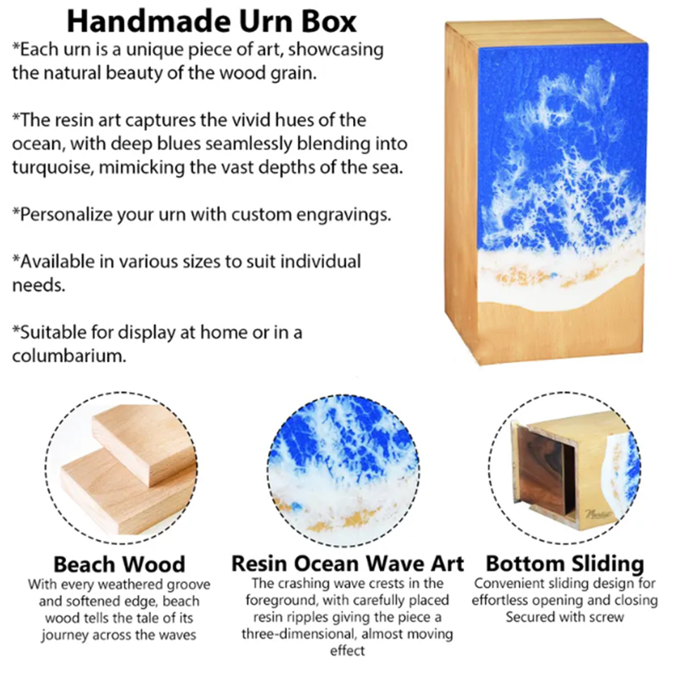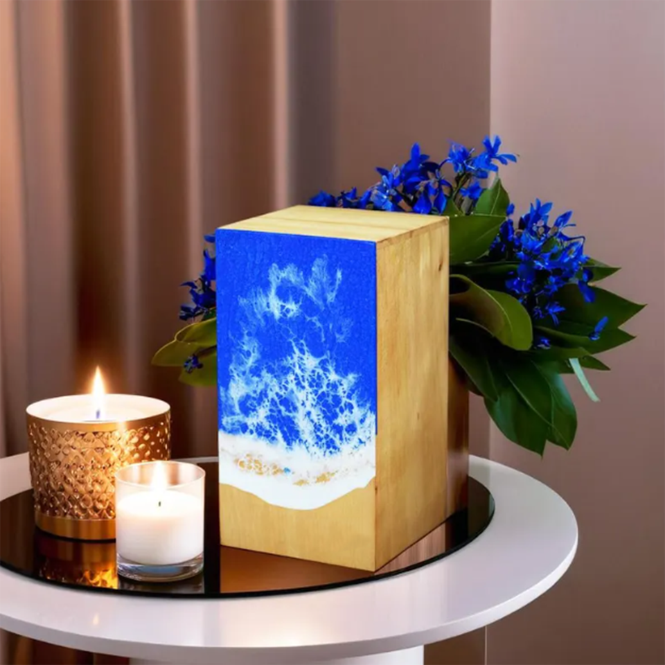 ชื่อผลิตภัณฑ์:โกศไม้อนุสรณ์พร้อมเรซินคลื่นทะเล