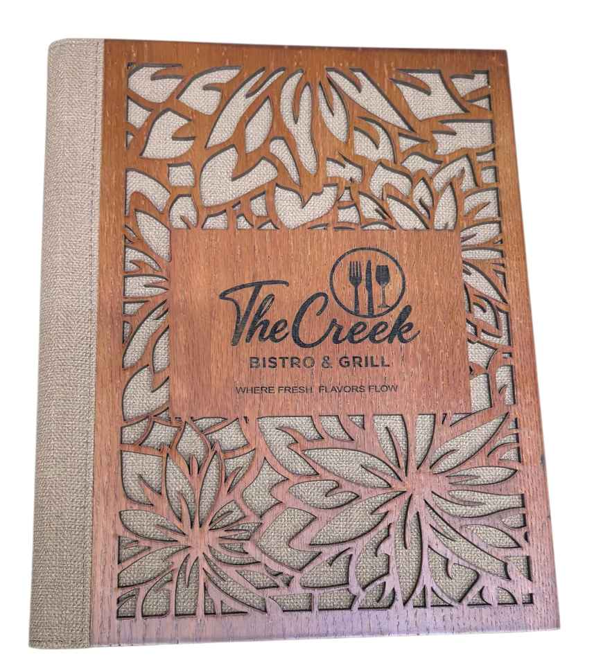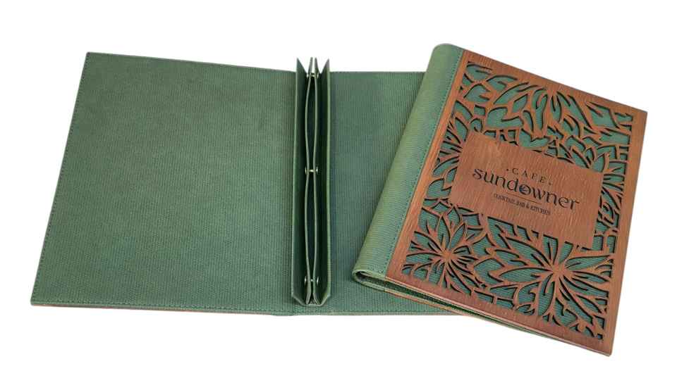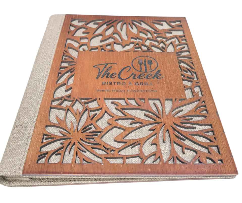 Description:menu folder with laser engraving