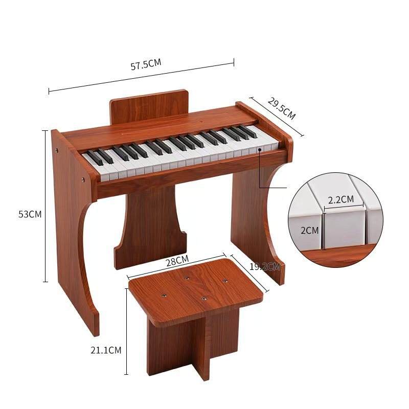 ไม้มินิเปียโน 37 คีย์พร้อมสตูลสำหรับเด็กหญิงของเล่นดนตรีคีย์บอร์ดอิเล็กทรอนิกส์ของขวัญวันเกิด 57.5X29.5X53 ซม.