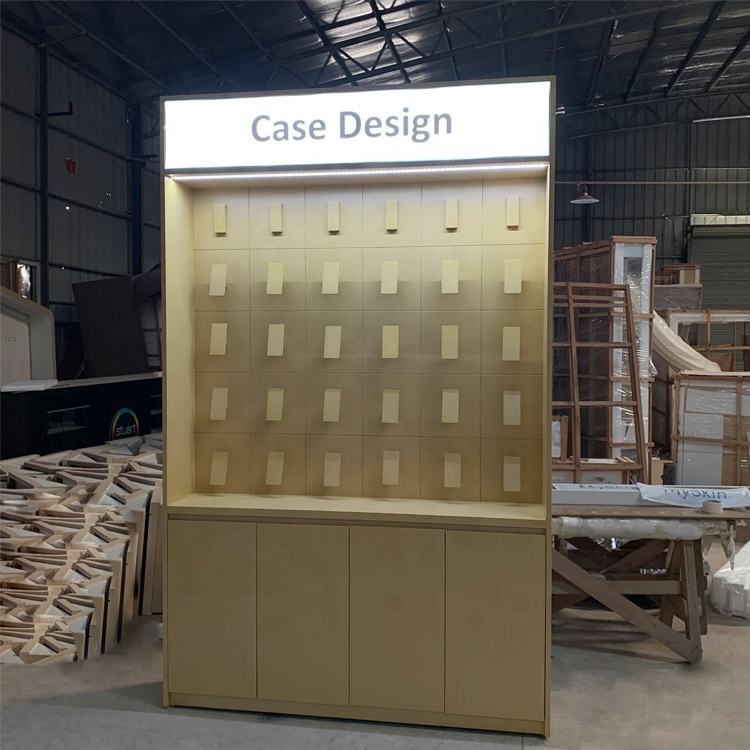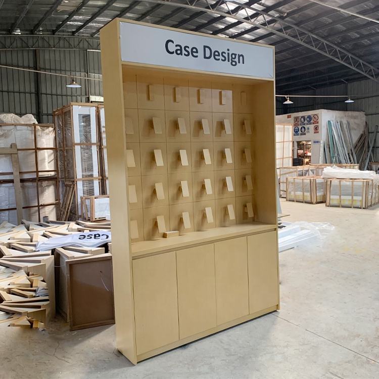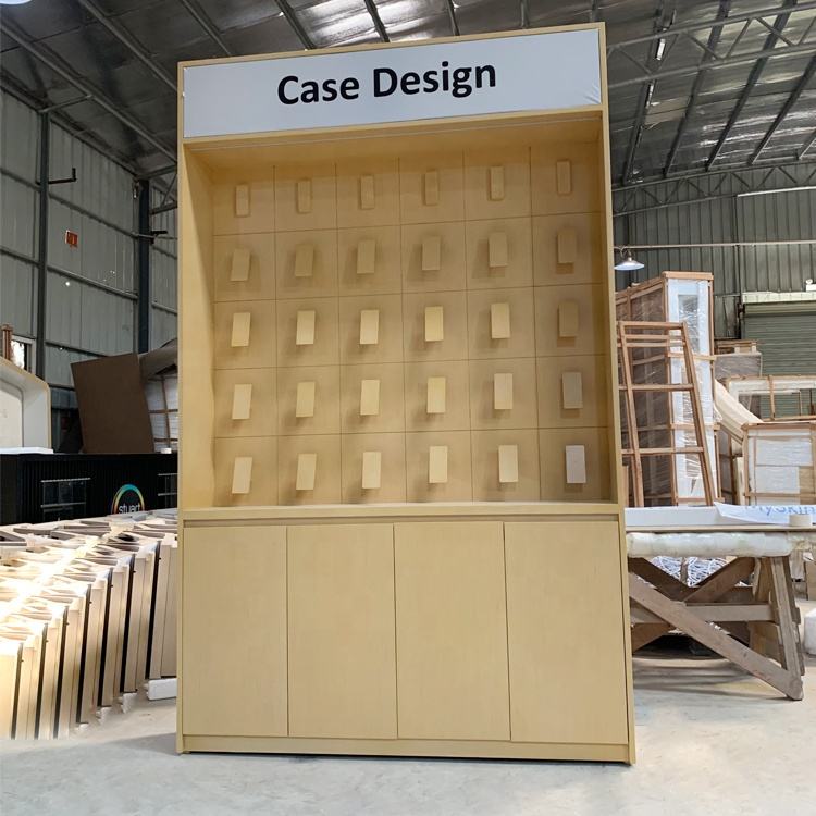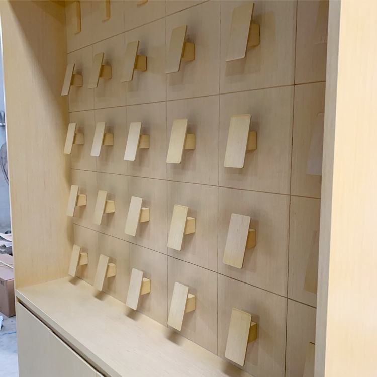 ตู้โชว์เคสโทรศัพท์มือถือแบบแขวน ทำจากไม้ พร้อมที่วางสายชาร์จโทรศัพท์