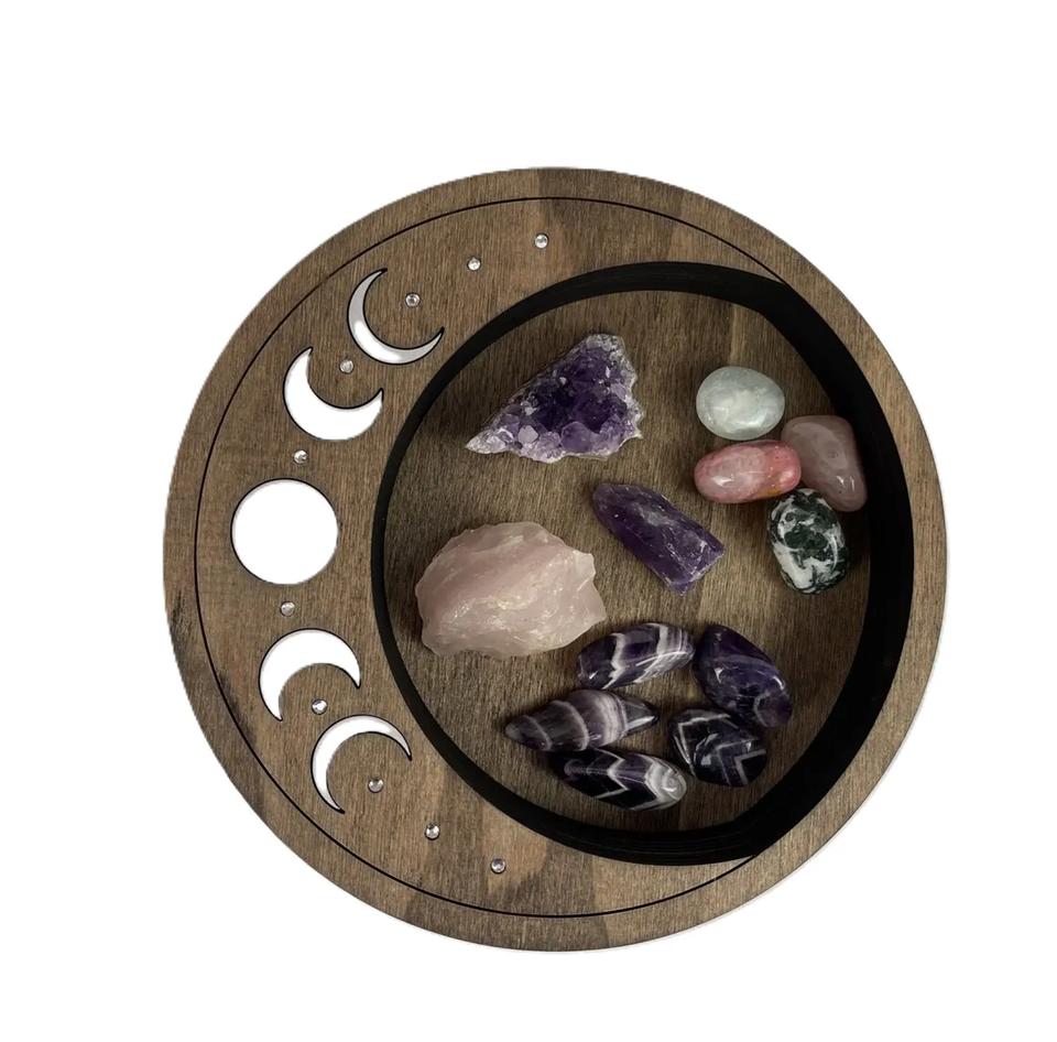 ถาดไม้รองเครื่องใช้บนโต๊ะอาหารลายดวงจันทร์ทำจากไม้ตกแต่งอาหารเช้าจัดแสดงขนมหวานสำหรับร้านอาหาร