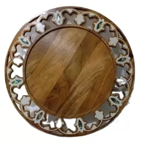 ถาดไม้ทรงกลมลายมุกคุณภาพสูงสำหรับใส่อาหาร ผลไม้ ถาดไม้แกะสลักลายมุกสำหรับใช้ในครัวเรือน ถาดไม้ตกแต่งลายช็อกโกแลต