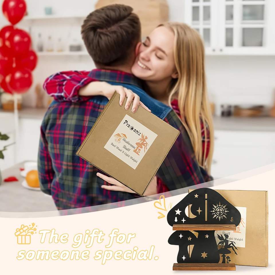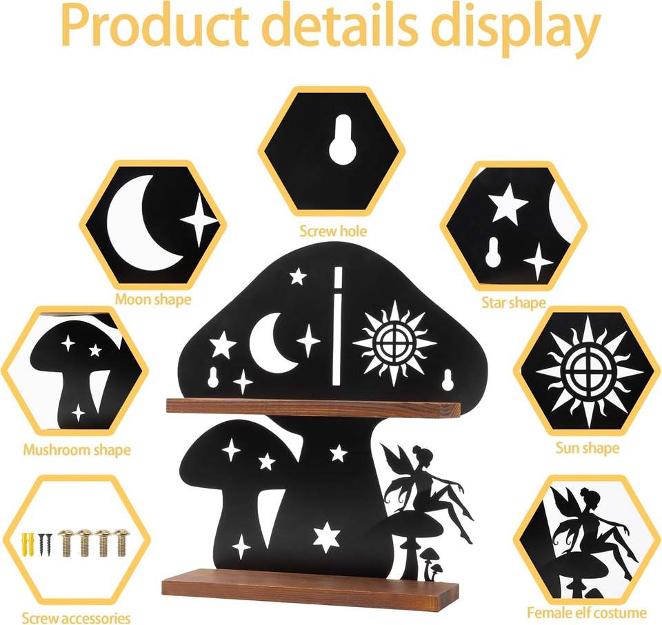ชั้นวางเห็ดไม้พร้อมแผ่นรองเหล็ก การตกแต่งผนังชนบทด้วยน้ำมันคริสตัลและอุปกรณ์เสริม