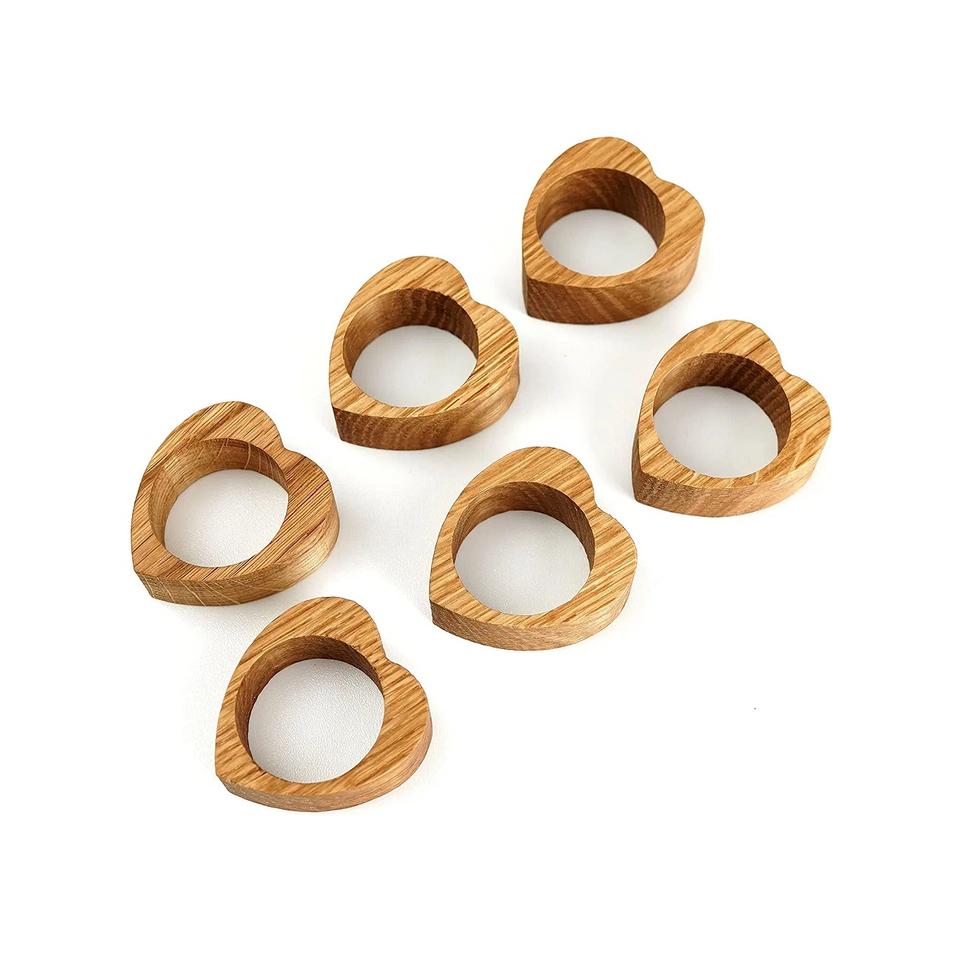 แหวนผ้าเช็ดปากไม้รูปหัวใจสีทองสำหรับตกแต่งโต๊ะ