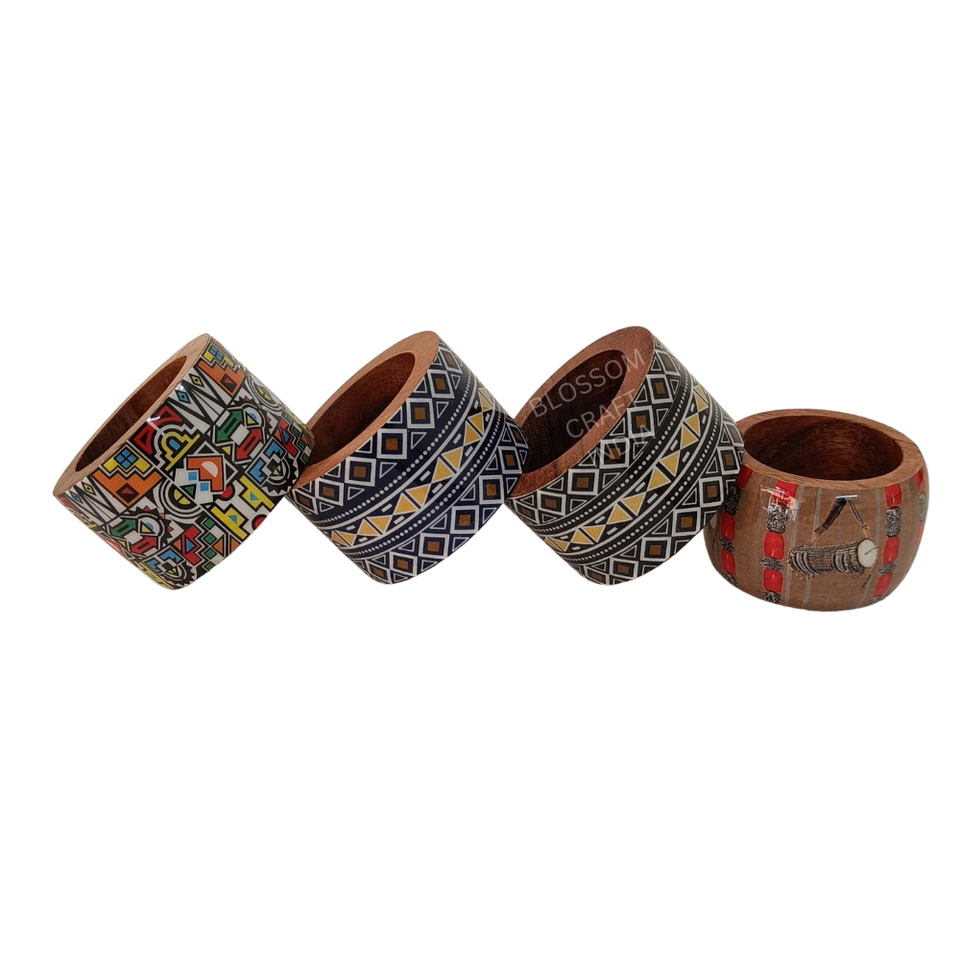 แหวนรองผ้าเช็ดปากไม้พร้อมลายสติกเกอร์เคลือบเงาหรูหรา วาดลายด้วยมือ ของตกแต่งโต๊ะอาหาร ของขวัญคุณภาพสูง