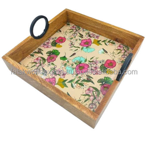 ถาดเสิร์ฟไม้ MDF ทรงสี่เหลี่ยมผืนผ้าหรูหราราคาประหยัดพร้อมพิมพ์ลายดอกไม้สวยงามปรับขนาดได้สำหรับโรงแรม