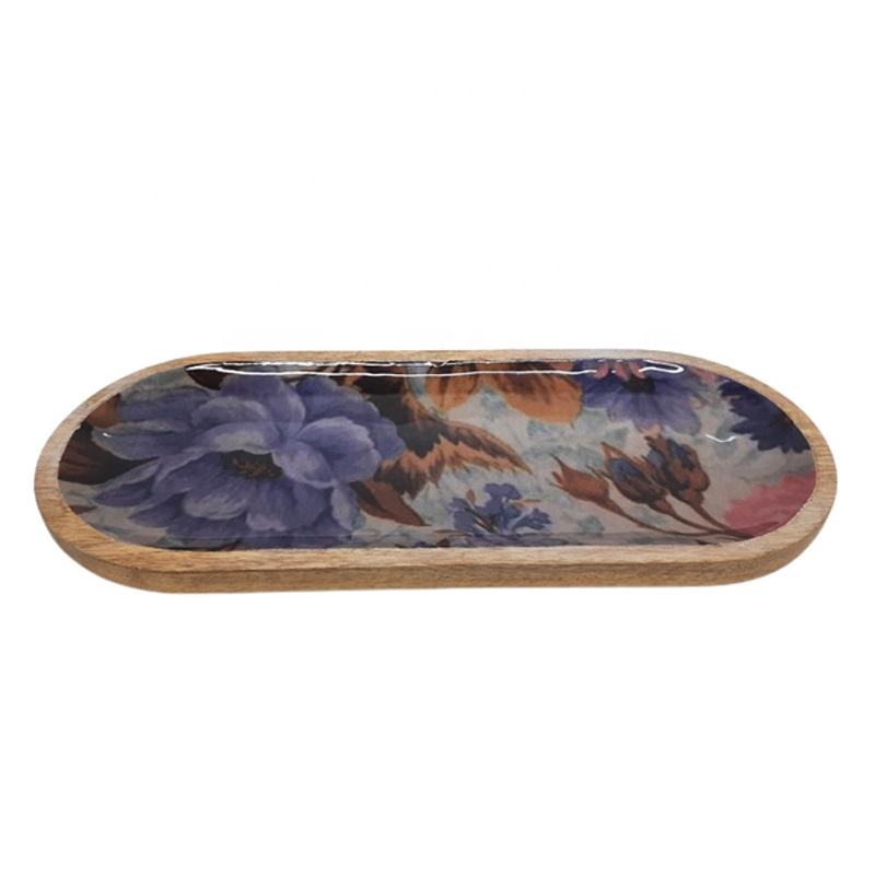 ถาดไม้รูปไข่ดอกไม้สติกเกอร์ Enamil และการตกแต่งธรรมชาติที่ให้บริการถาดและตกแต่งถาดสำหรับบ้านและห้องครัวในกลุ่ม