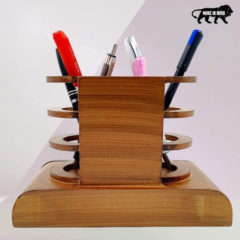ที่ตั้งปากกาไม้สำหรับโต๊ะทำงานและโต๊ะอ่านหนังสือพร้อมนาฬิกาที่ใส่ปากกาไม้สำหรับโต๊ะทำงานที่ใส่ปากกาไม่เหมือนใครพร้อมนาฬิกาตกแต่ง