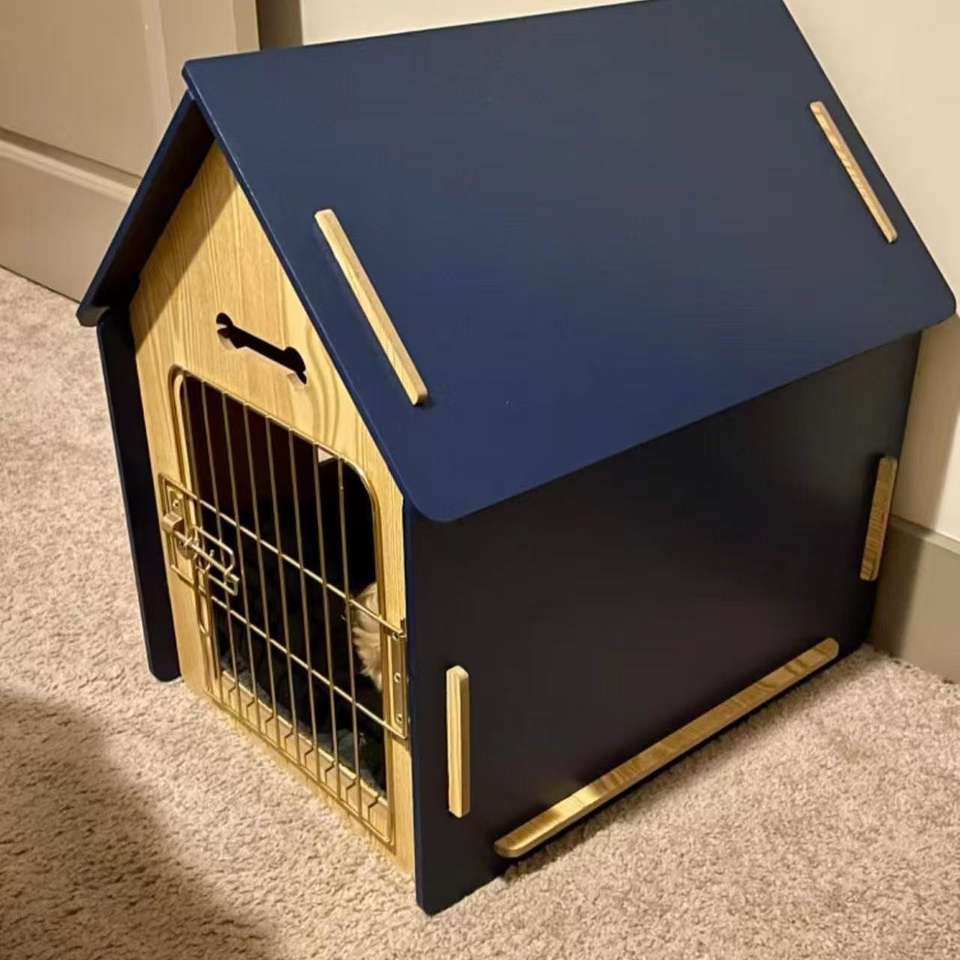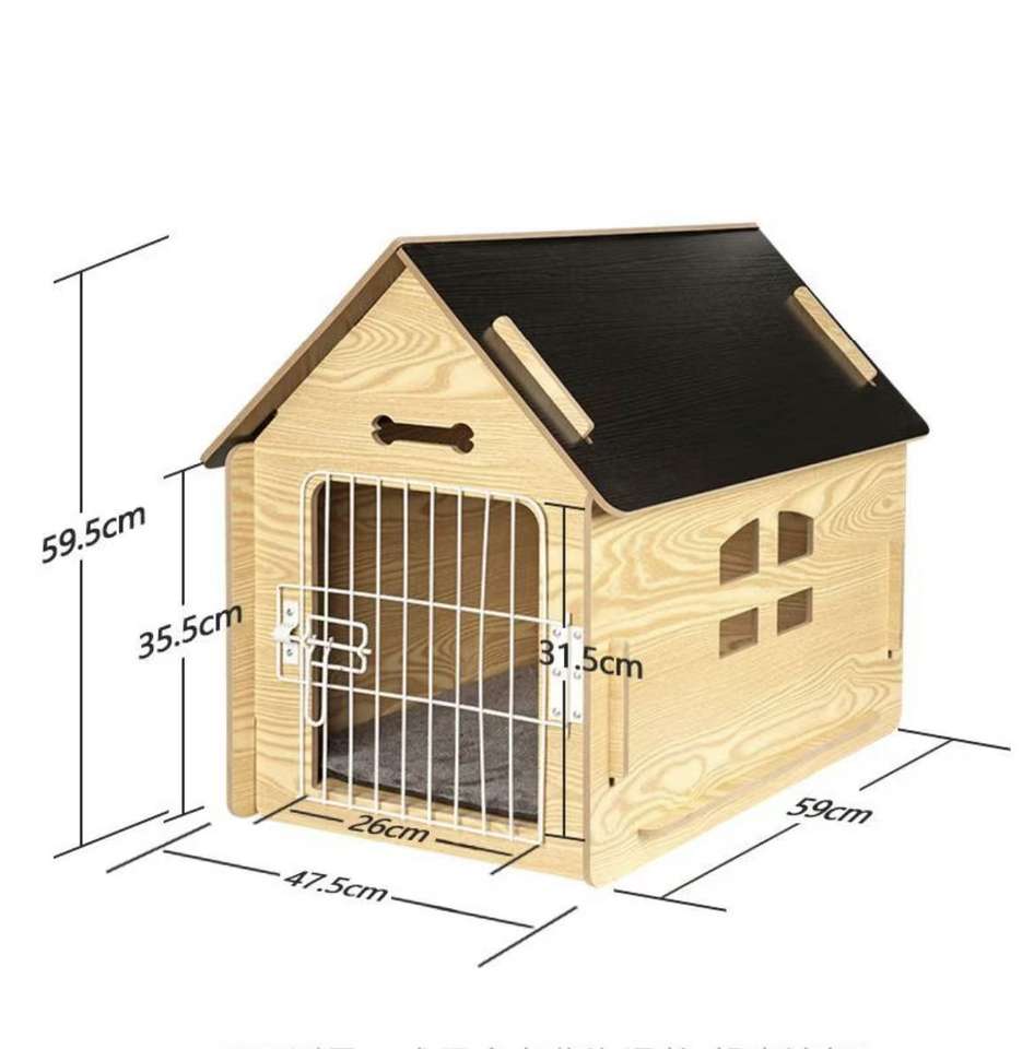 บ้านไม้พร้อมประตูโลหะสำหรับสุนัข/แมวในร่ม/กลางแจ้งพร้อมช่องระบายอากาศรูปกระดูกที่พักสัตว์เลี้ยงที่ล็อคได้พร้อมเสื่อนุ่ม