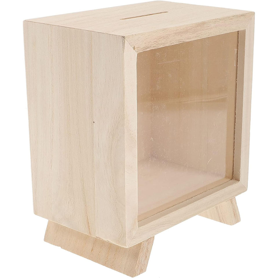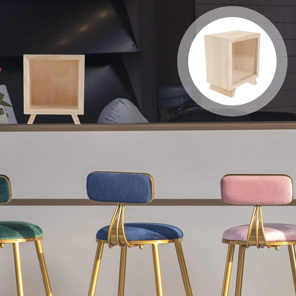 ไม้กระปุกออมสิน Cassette Cassette พร้อมแก้วอะคริลิคโครงไม้ เปลี่ยนขวด ประหยัดเงิน กล่องเคล็ดลับธนาคาร กล่องแสดงร้านกาแฟ