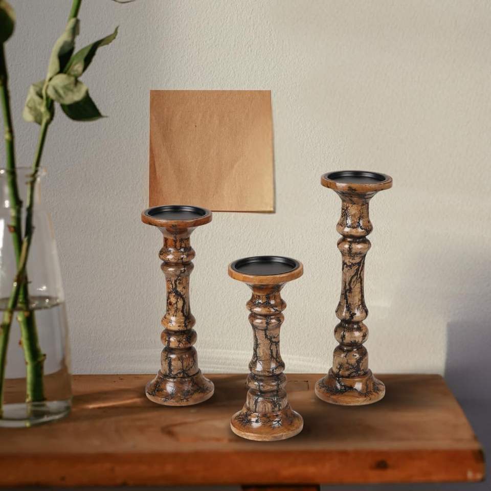 ชุดเชิงเทียนไม้ 3 ชิ้น เชิงเทียนไม้ตกแต่งสำหรับตกแต่งคริสต์มาส งานแต่งงานสไตล์ฟาร์มเฮาส์ งานเลี้ยง โต๊ะอาหาร