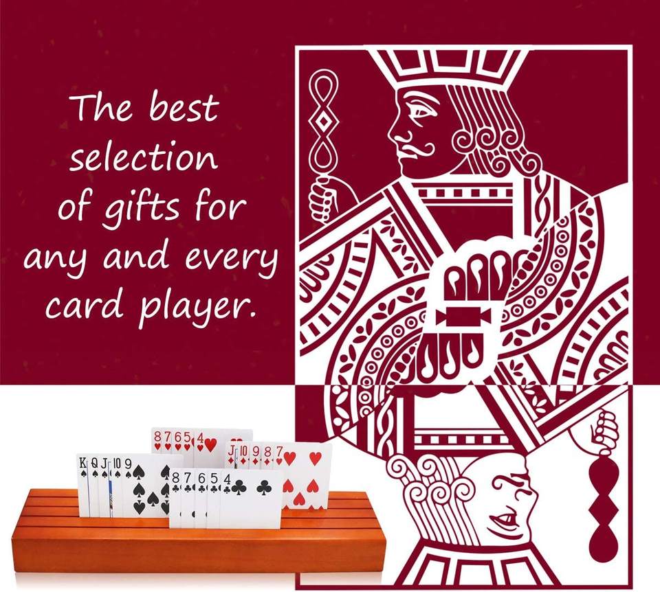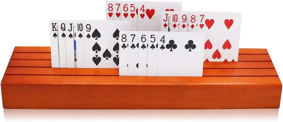 ชุดที่ใส่การ์ดไม้สำหรับเล่นการ์ด2ใบถาดเก็บการ์ดแบบแข็งสำหรับเด็กผู้สูงอายุผู้ใหญ่-13.8นิ้ว * 3.1นิ้ว