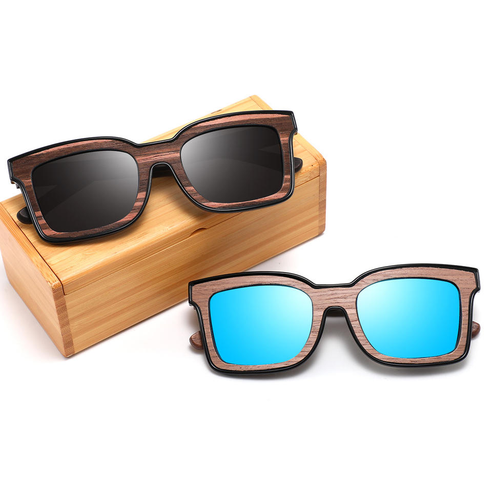แว่นกันแดดโพลาไรซ์ไม้ทรงสี่เหลี่ยมสำหรับทุกเพศ ป้องกันรังสียูวี 400 เลนส์ TAC กรอบ PC แฟชั่นป้องกันแสงแดดสำหรับการเดินทางและขับรถ