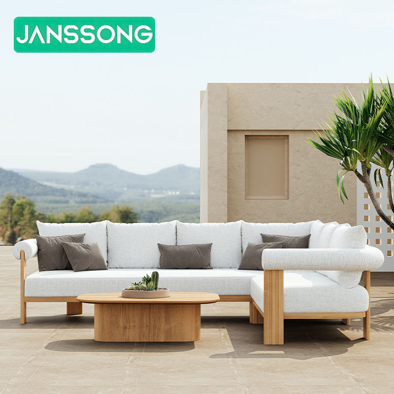 ชุดเฟอร์นิเจอร์ไม้สำหรับสวนริมสระน้ำ ชุดโซฟาสวนสำหรับโรงแรมและวิลล่า ชุดเฟอร์นิเจอร์กลางแจ้งทันสมัย ชุดโซฟาไม้สักสำหรับกลางแจ้ง โซฟาสำหรับลานโรงแรม