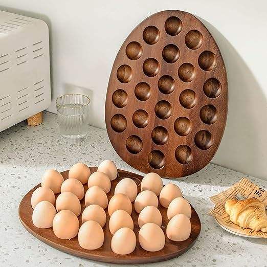 ชั้นเก็บไข่แบบพกพาทำจากไม้ชั้นวางไข่แบบสองแถวเป็นมิตรกับสิ่งแวดล้อมทนทานสำหรับห้องครัวตู้เย็นโต๊ะ