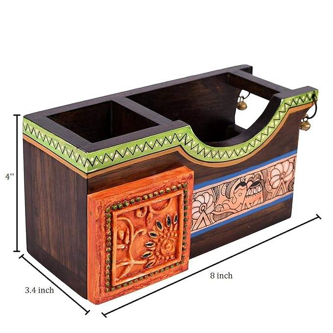 ที่วางช้อนไม้พิมพ์ลายสำหรับจัดระเบียบอุปกรณ์บนโต๊ะอาหาร ที่วางช้อนไม้พิมพ์ลายดอกไม้ทำมือสำหรับห้องครัว