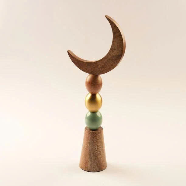 ไม้รอมฎอนพระจันทร์เสี้ยวพร้อมฐานทรงกลมหลากสีของตกแต่งโต๊ะเดือนรอมฎอนสำหรับ2026รอมฎอนและเดือนอีสเตอร์