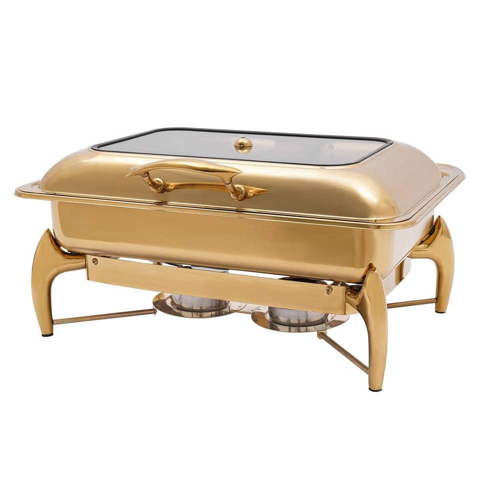 ถาดอุ่นอาหารทำจากสเตนเลสสตีลทรงสี่เหลี่ยมผืนผ้าสไตล์อาหรับกลางทำจากไม้สำหรับโอกาสพิเศษ