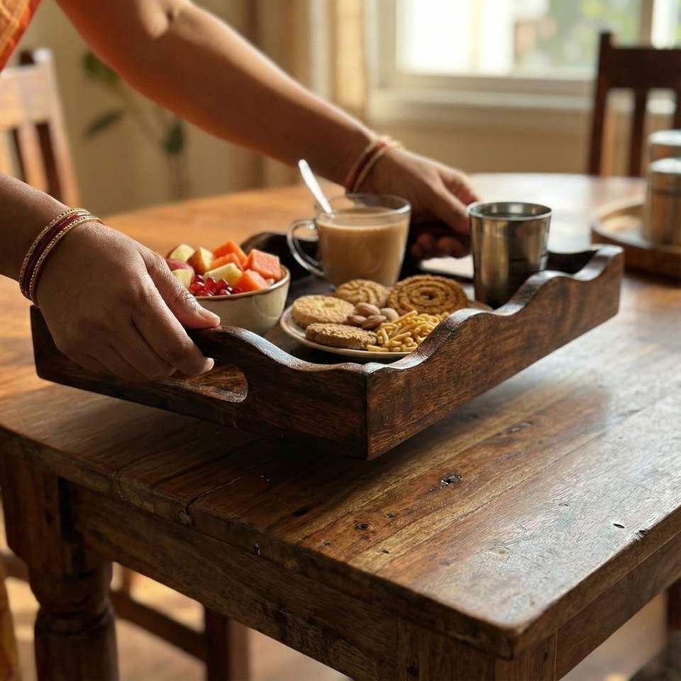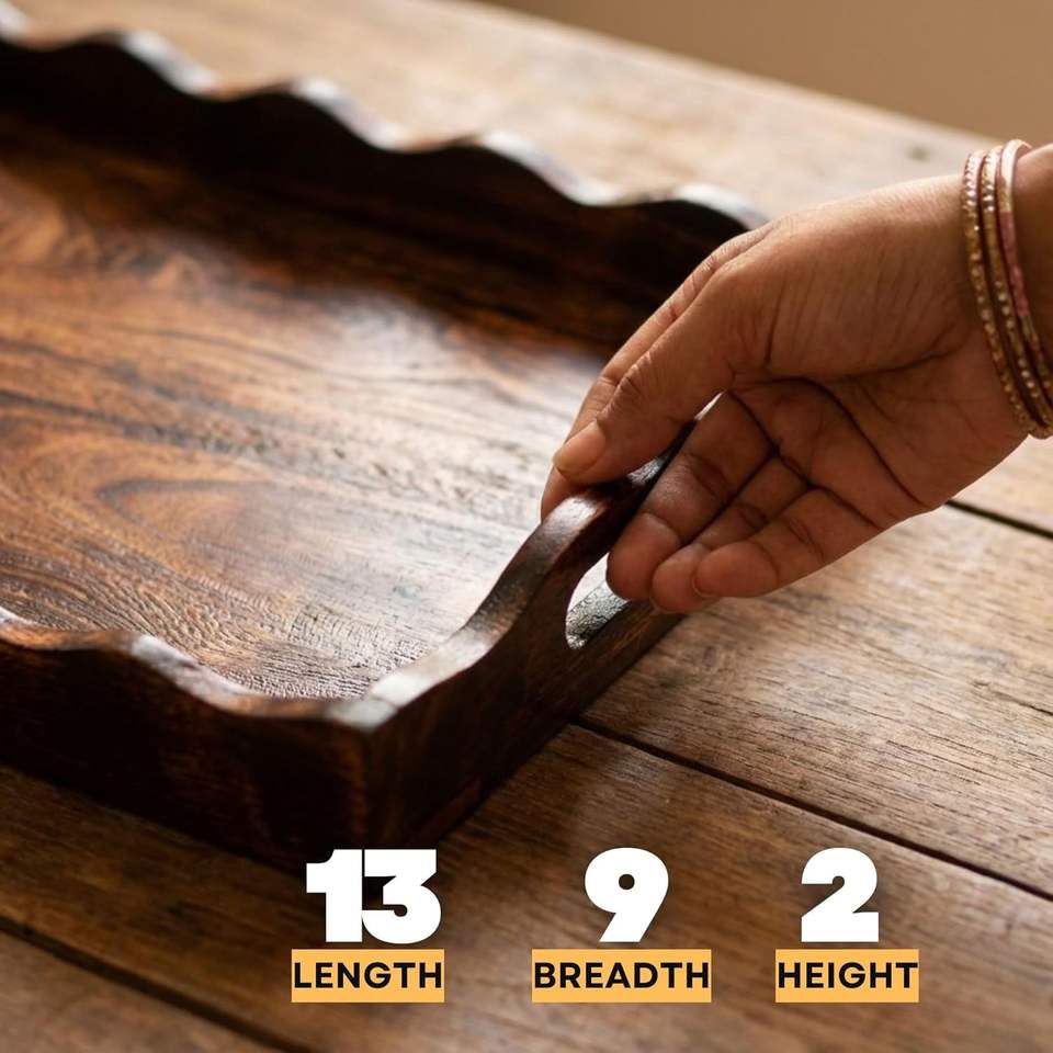 Wooden Rectangular Serving Tray for Home & Kitchen Usage in Restaurant Available for Homes Tea & Snacks Tray with Handles