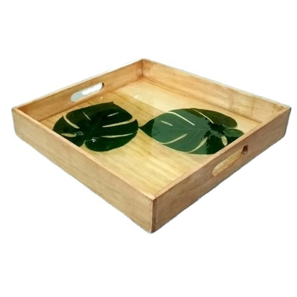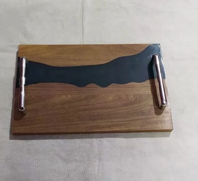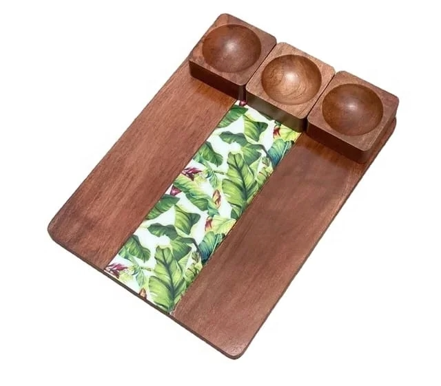 ถาดเสิร์ฟพร้อมด้ามจับทำจากไม้อะคาเซียสี่เหลี่ยมผืนผ้าไม้สำหรับงานเลี้ยงสมัยใหม่ทำจากไม้