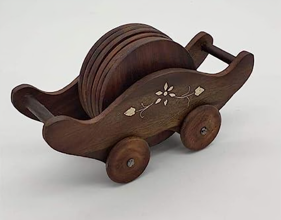 ชุดที่รองแก้วไม้ทรงกลมพร้อมที่ตกแต่งลายดอกไม้แผ่นรองเครื่องดื่มทำมือสำหรับป้องกันโต๊ะกาแฟชา
