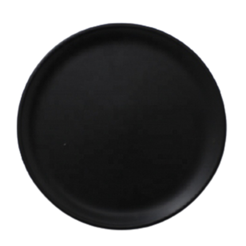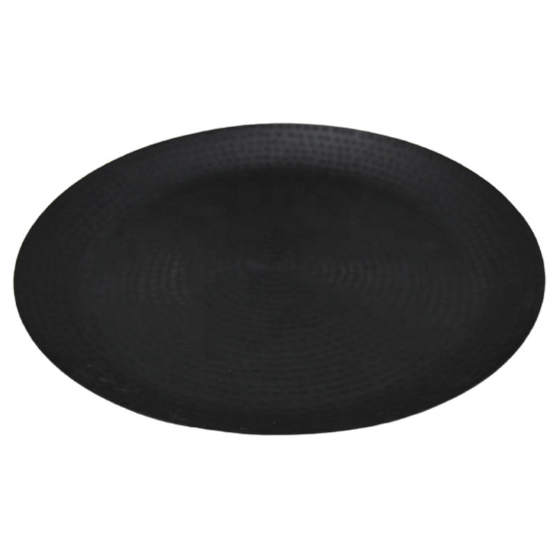 จานสเต็กขนาดใหญ่จานและถาดสำหรับเสิร์ฟอาหารในร้านอาหารจานกลมทำด้วยมือสีดำ