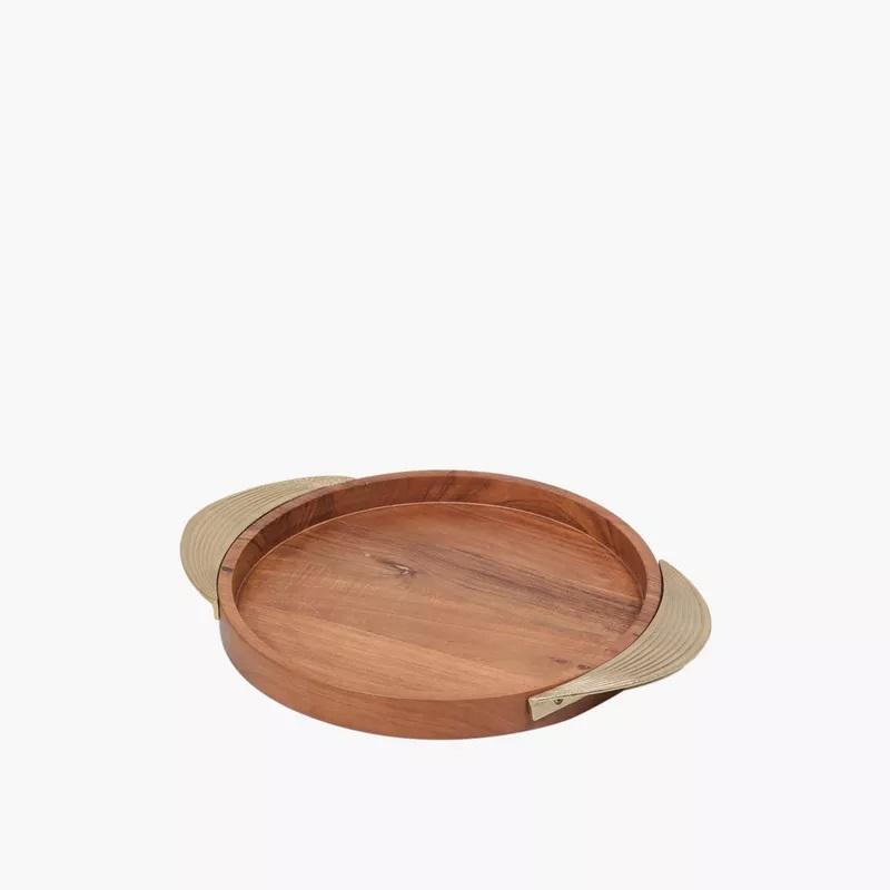 ถาดไม้กลมสําหรับเสิร์ฟการออกแบบล่าสุดบนโต๊ะอาหารคุณภาพสูงอาหารค่ําถาดเสิร์ฟไม้ขนาด 11x11x1 นิ้ว