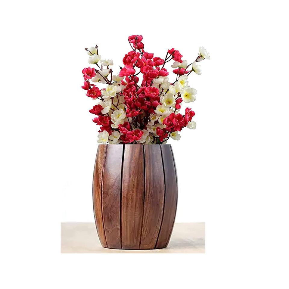 แจกันไม้ทรงกลมสไตล์เอเชียเซน กระถางดอกไม้ ขนาดสั่งทำได้ งานแฮนด์เมด ทนทาน สำหรับวางบนโต๊ะ ใช้ได้ทั้งภายในและภายนอกบ้าน ของตกแต่งบ้าน