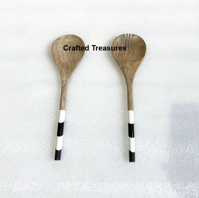 เซิร์ฟเวอร์สลัดไม้พร้อมที่จับพิมพ์เคลือบอุปกรณ์ครัวสลัดเซิร์ฟเวอร์ทันสมัยขายส่งช้อนและส้อมอะคาเซีย