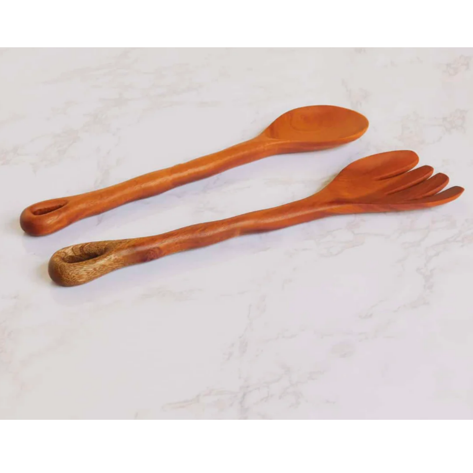 ชุดช้อนตักสลัดไม้กระถินเทศคุณภาพสูงสไตล์ยุโรป ดีไซน์รักษ์โลก พร้อมด้ามจับลายคลื่น ผลิตภัณฑ์เครื่องครัวจากเวียดนาม