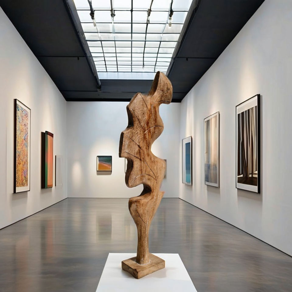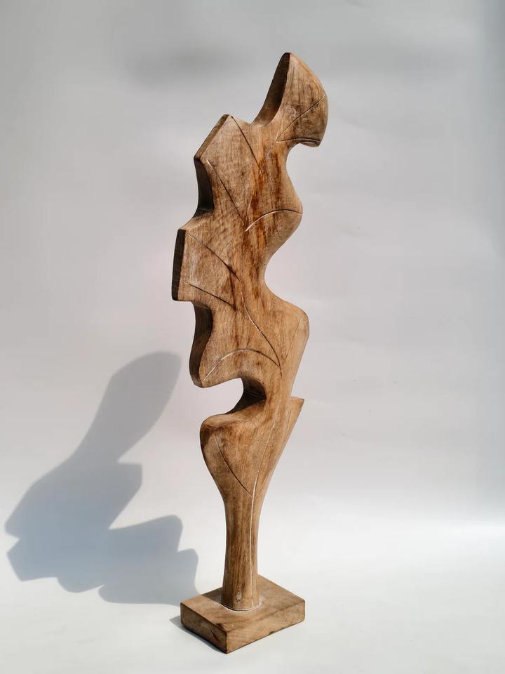 ประติมากรรมไม้แกะสลักด้วยมือ ศิลปะตกแต่งสมัยใหม่บนฐานแท่น