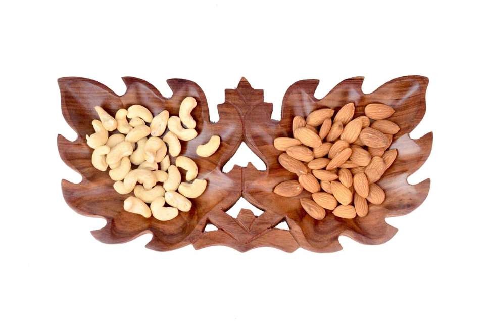Wooden Section Serving Tray Natural Mahogany Wood Divided Snack Platter for Nuts Dried Fruits Candies
