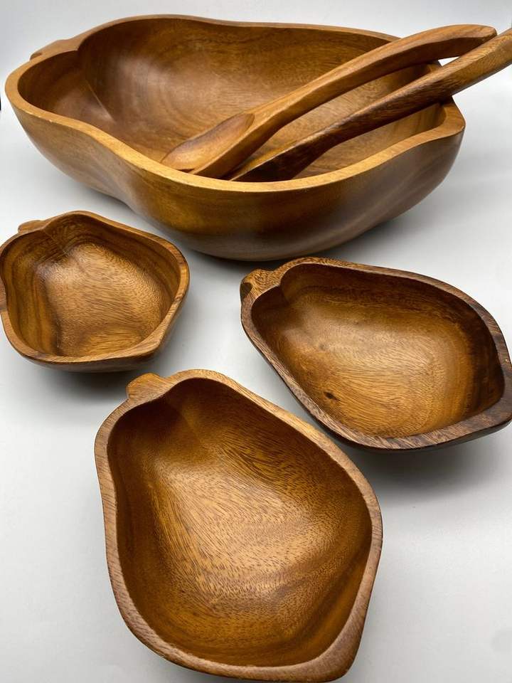 ชามเสิร์ฟไม้ที่ออกแบบมาอย่างสวยงามสำหรับตกแต่งบ้านสไตล์ชนบทโต๊ะรับประทานอาหารผสมสลัดและใช้ในครัว