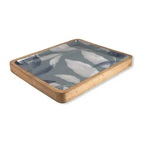 ถาดไม้เสิร์ฟพร้อมแผ่นไม้แบบแฮนด์เมดถาดสำหรับตกแต่งบ้านโต๊ะรับประทานอาหารดีไซน์พิมพ์ลายใบไม้เป็นมิตรกับสิ่งแวดล้อม