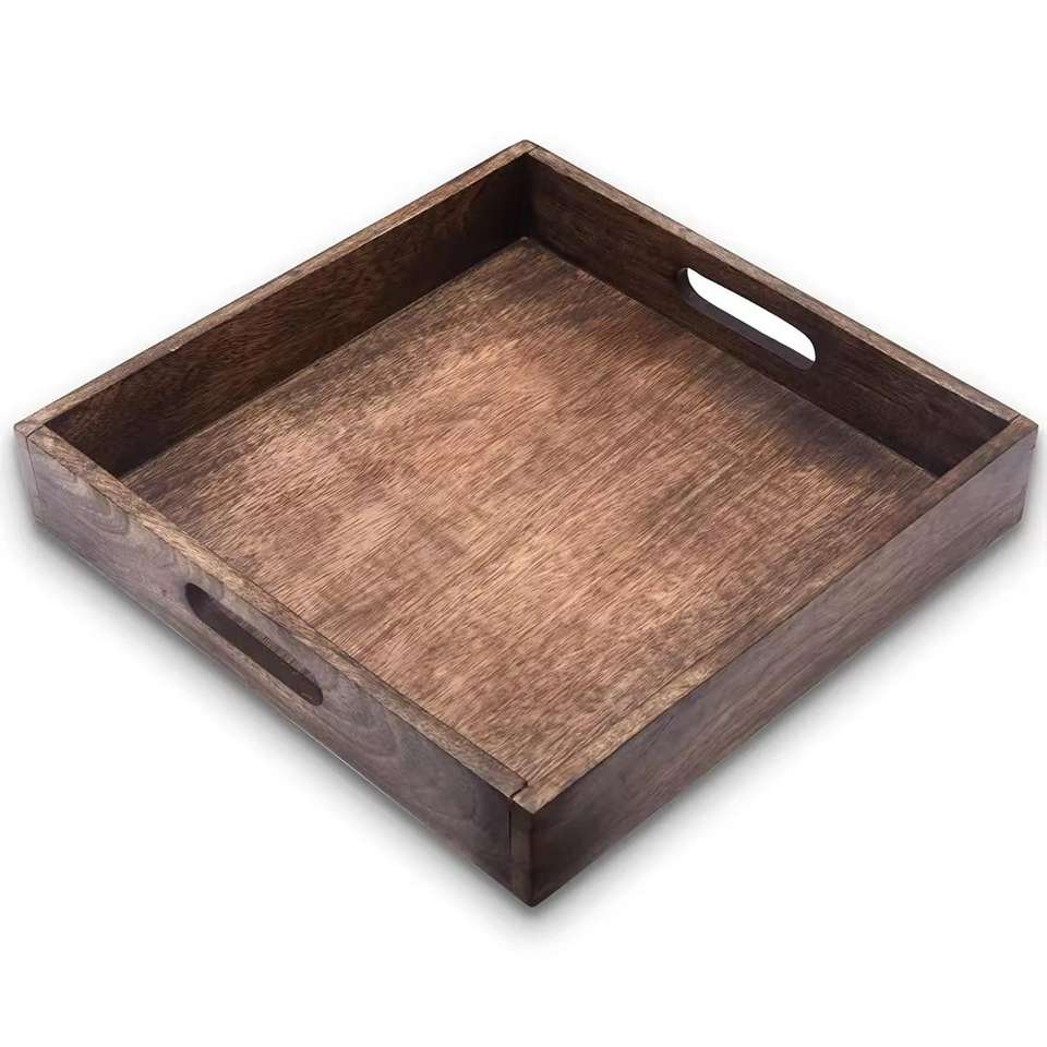 ถาดไม้เสิร์ฟอาหารเช้าแบบชนบทถาดไม้สำหรับนักออกแบบออกแบบได้ตามที่ต้องการ