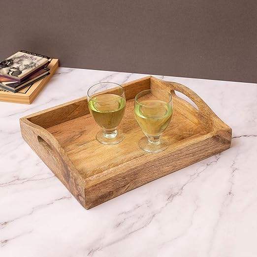 ถาดเสิร์ฟไม้พร้อมด้ามจับแบบตัดถาดไม้สำหรับตกแต่งห้องรับประทานอาหาร
