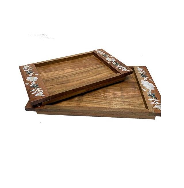 ถาดเสิร์ฟไม้พร้อมไม้ถูพื้นดีไซน์ทันสมัยถาดเสิร์ฟช็อคโกแลตและขนมหวานจานไม้สำหรับโรงแรมและร้านอาหาร